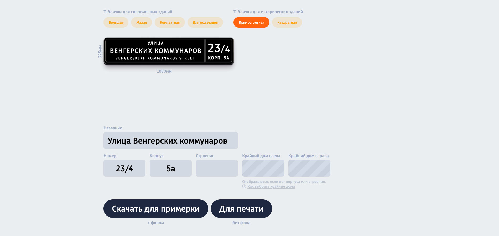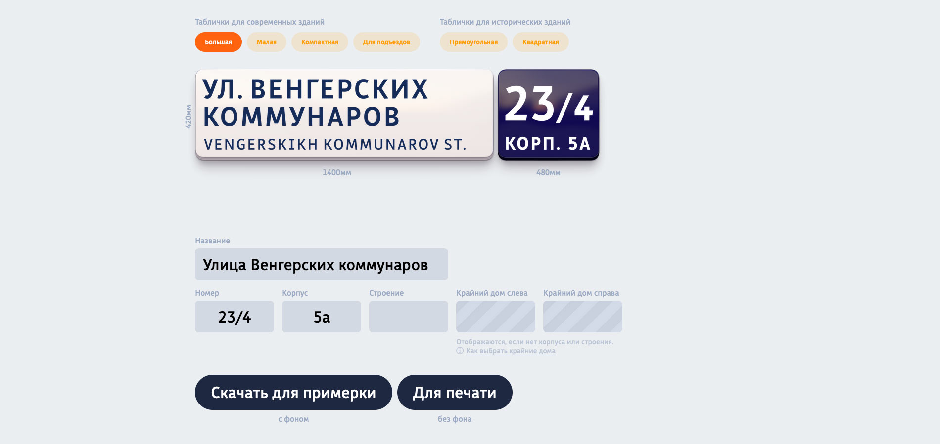 Генератор позволяет создавать PDF-файлы согласно правилам дизайна адресных табличек.